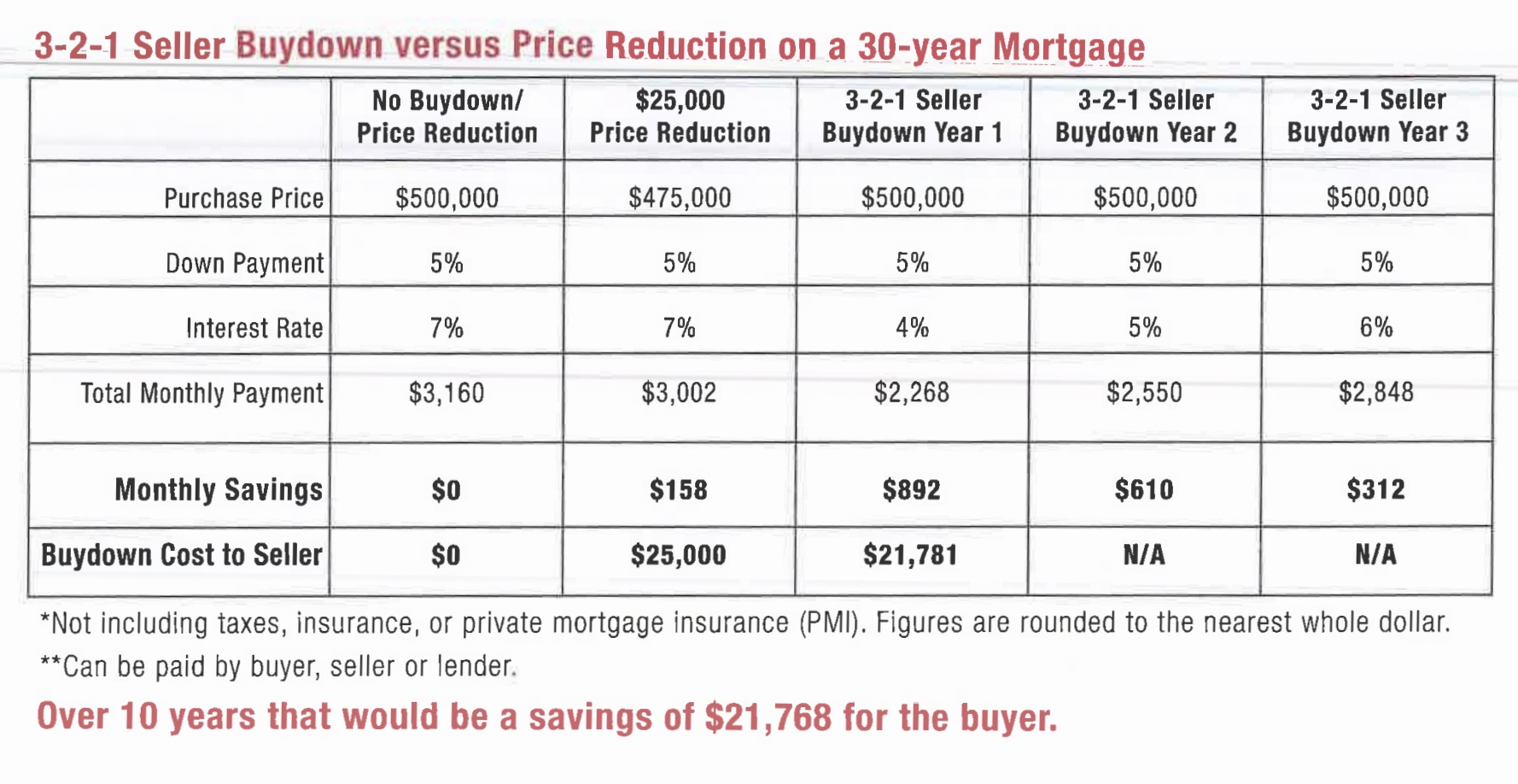 In this graph, you will notice how a buydown vs. a price reduction benefits both the buyer and the seller.