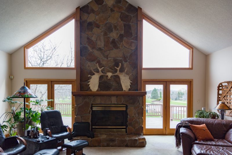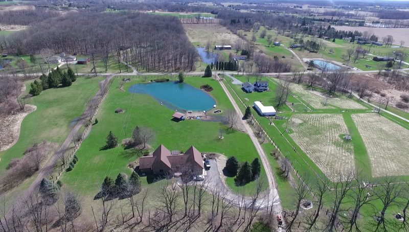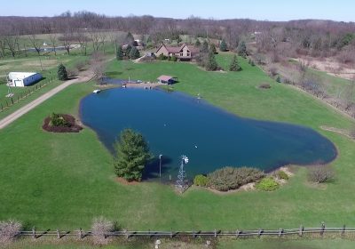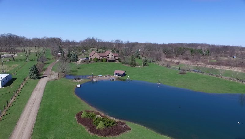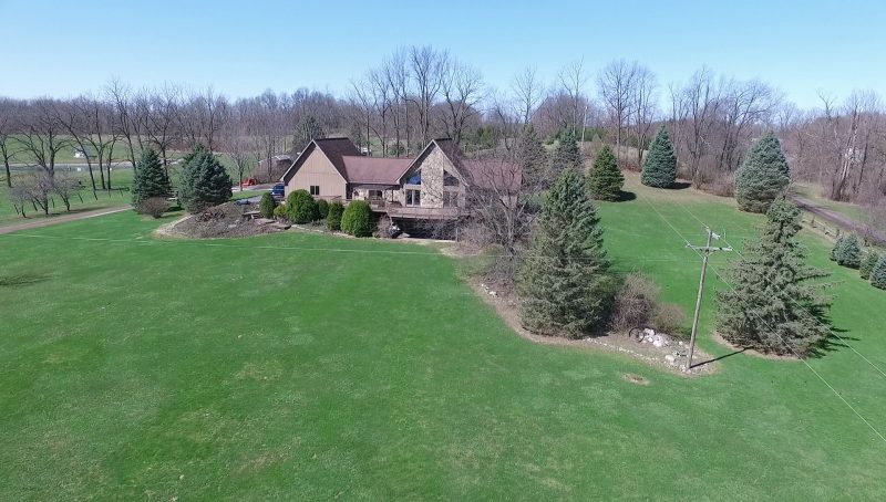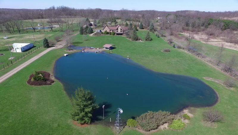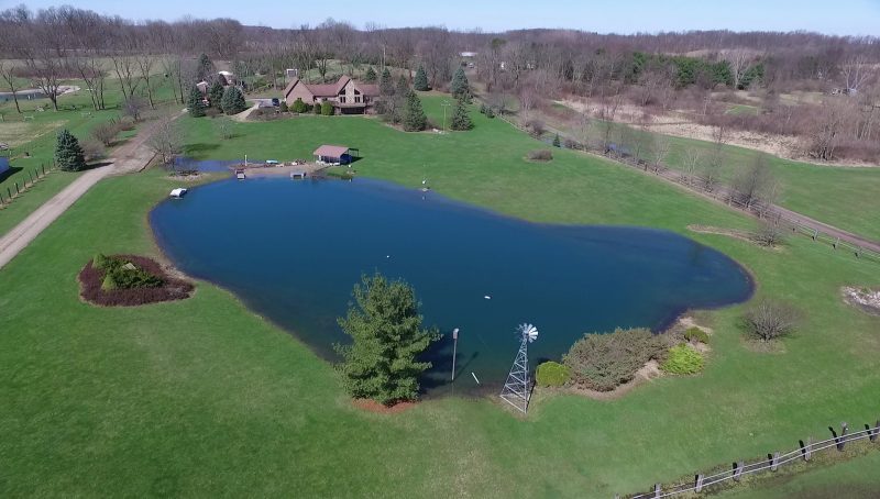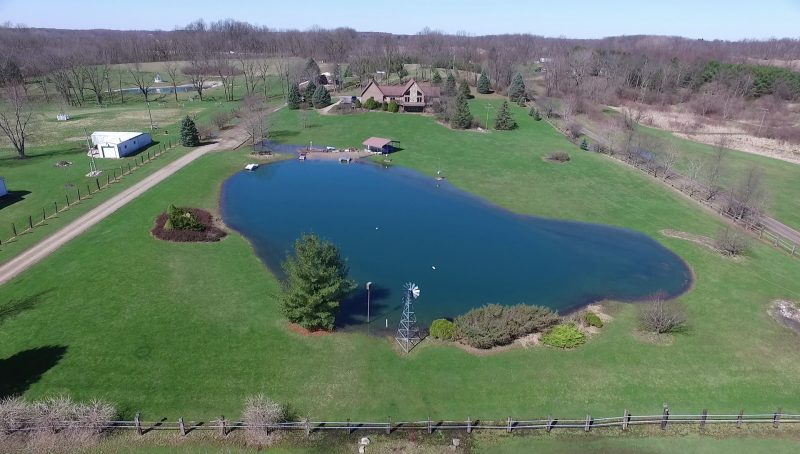 Remarks – Your own hide away vacation home without the drive to get up North! This well constructed unique A Frame home features 10 acres with a beautiful windmill, stocked, stream fed pond and a sandy beach for summer days. In the kitchen, there is granite counter tops and a built in pantry. The huge finished walkout basement has tons of living space and it’s own fully equipped kitchen for entertaining and guest. Extra space for an additional bedroom on the lower level. 36×50 pole barn has electric, water, 13×50 overhang, and roof has lifetime warranty.