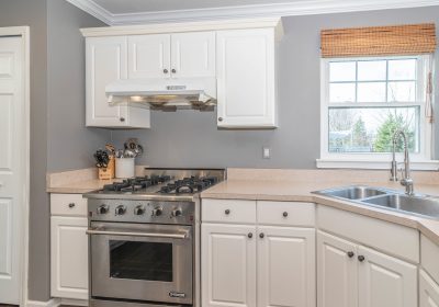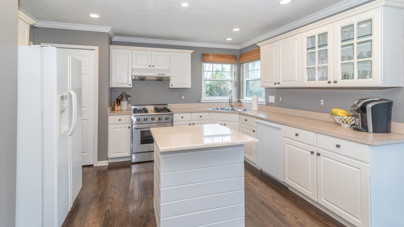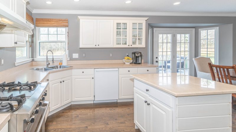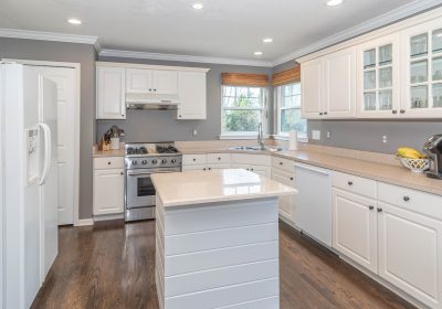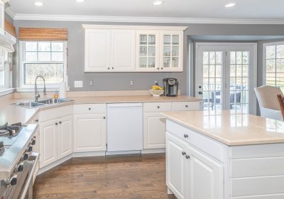 - on-trend, sleek white cabinetry