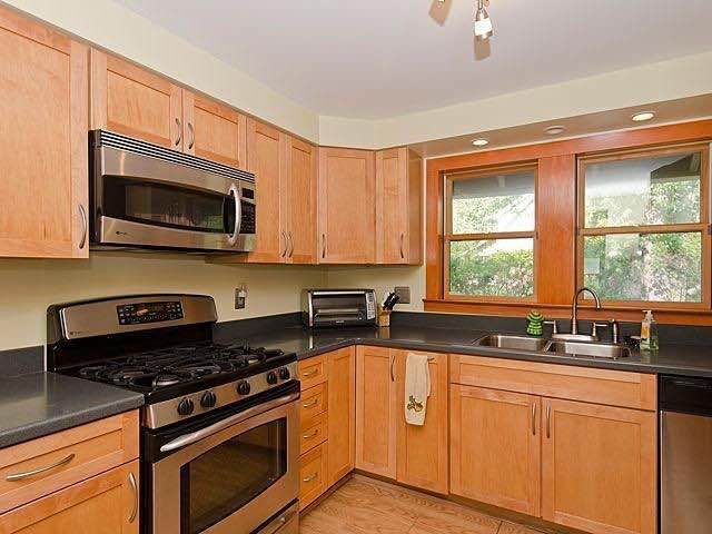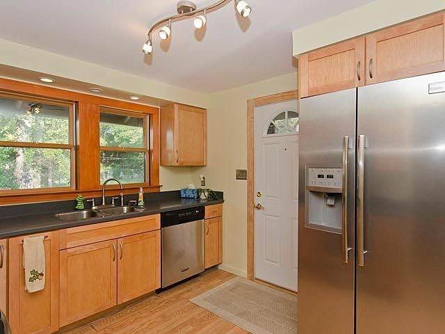 Historic home on large lot and close to everything. Beautiful updated maple kitchen with stainless steel appliances, including a refrigerator, stove, dishwasher, and microwave. Hardwood and laminate floors throughout. Spotlessly clean and neutral decor. The windows are recently updated and feature Hunter Douglas blinds. 2nd floor large master bedroom and updated baths. Washer and dryer are included.
