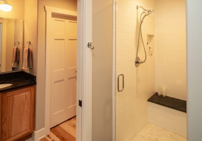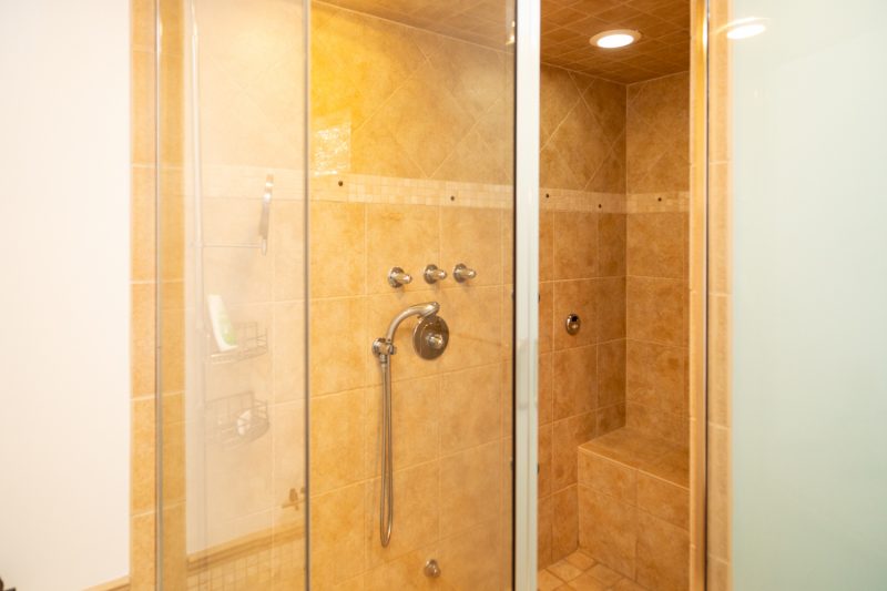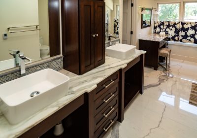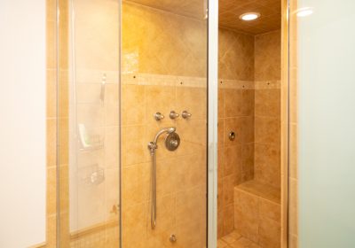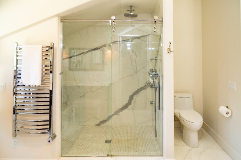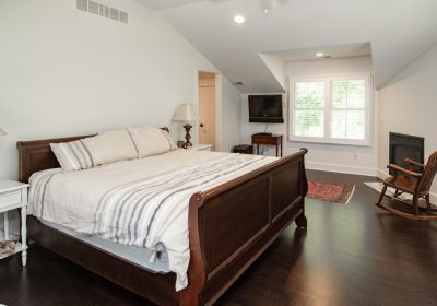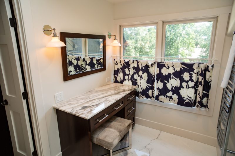 The first-floor mudroom has new California Closet lockers and a tiled pet bath/shower. The fireplace in the master suite has a Calcutta Gold Marble hearth to match the vanity in the attached bathroom. Master suite bathroom also has Calcutta Gold Marble vanity with heated floors and towel rack.