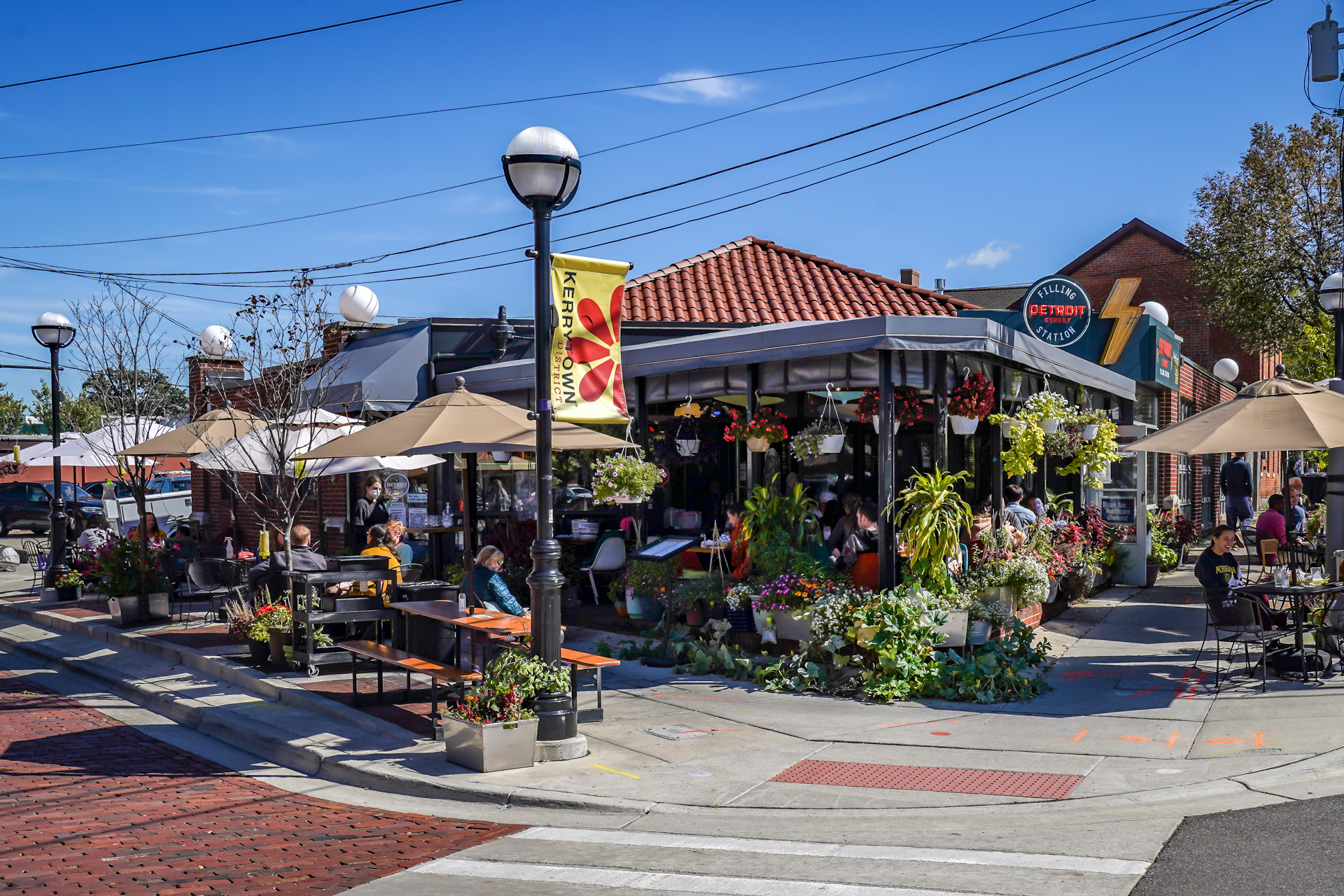 - Located just steps from Kerrytown Market & Shops, the Detroit Street Filling Station is a vegan comfort food restaurant with a beautiful covered outdoor patio adorned with lush plants, some of which are available for purchase. Additionally, they host Music Mondays featuring New Orleans-style duos and trios on the patio from 6-8 pm throughout the warm months.