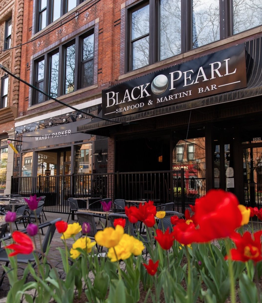 - Black Pearl is a sleek Main Street restaurant with a good happy hour as well as lots of seafood and vegetarian dishes. It has an outdoor seating area right along Main Street with umbrellas during the summer and greenhouse seating during the winter.