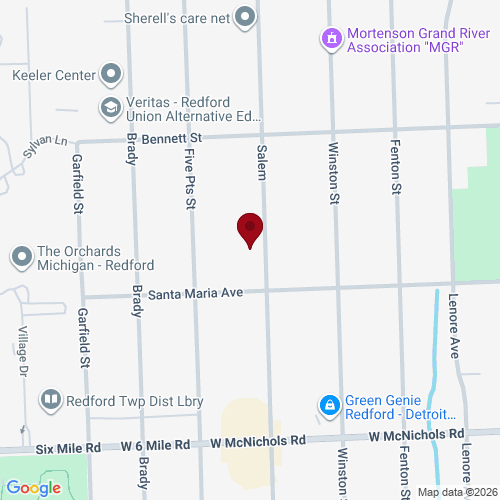 (734) 822-7496Welcome to 17343 Salem — a fully renovated bungalow situated on an oversized, nearly quarter-acre lot, perfectly positioned just minutes from the Redford border in a popular, up-and-coming Detroit west-side neighborhood. This ”all new everything” home boasts major upgrades including a new roof, new windows, new HVAC, updated electrical/plumbing, new light fixtures, fresh paint, and two fully renovated bathrooms. The sun-drenched living room with LVP flooring features a stylish pass-through to the chef’s kitchen, which is the real showstopper, featuring white shaker cabinets with gold hardware, quartz countertops, a decorative subway-and-marble style backsplash, a farmhouse sink, and a stainless steel appliance package (gas range, microwave, dishwasher) included with the sale. House Sitter will leave during showings. The main-floor full bathroom is a spa-inspired retreat, complete with marble tile floors, a soaking tub, gold fixtures, a floating vanity, and a stunning round backlit mirror set against a rich navy accent wall. Upstairs, the primary bedroom offers plush new carpet, vaulted ceilings, and a large closet, while two additional main-level bedrooms provide flexible space for family or a home office. The basement adds extra living space with a freshly painted epoxy-style floor, a corrugated steel accent wall, and a separate half bath, ready for use as an entertainment area or home gym. Finally, the exterior features a deep, fully fenced backyard with mature trees, offering natural privacy for grilling or simply enjoying the peaceful space.
